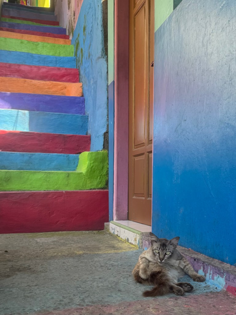Malang charmed us with its colorful neighborhoods, colonial-era monuments, and friendly locals eager to hear our stories. One highlight was visiting the vibrant Jodipan Rainbow Village. Once a slum, it has been transformed into a living art project with brightly painted houses and murals in every color imaginable. A small entrance fee goes toward supporting the local community, making the visit even more meaningful.