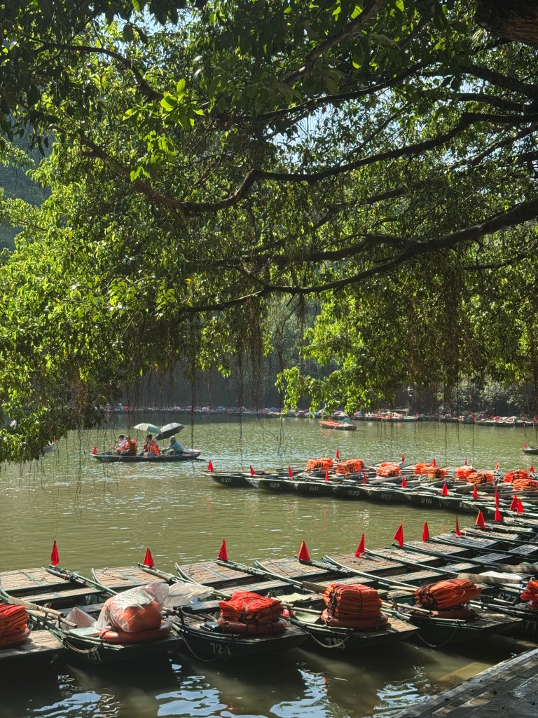 Next, we took a boat tour through Trang An, which was absolutely stunning. The landscapes felt almost unreal, with towering mountains and peaceful rivers. The boats themselves were small and charming, but we couldn’t help feeling a bit sorry for the women rowing them. They were incredibly strong, doing physically demanding work for hours.