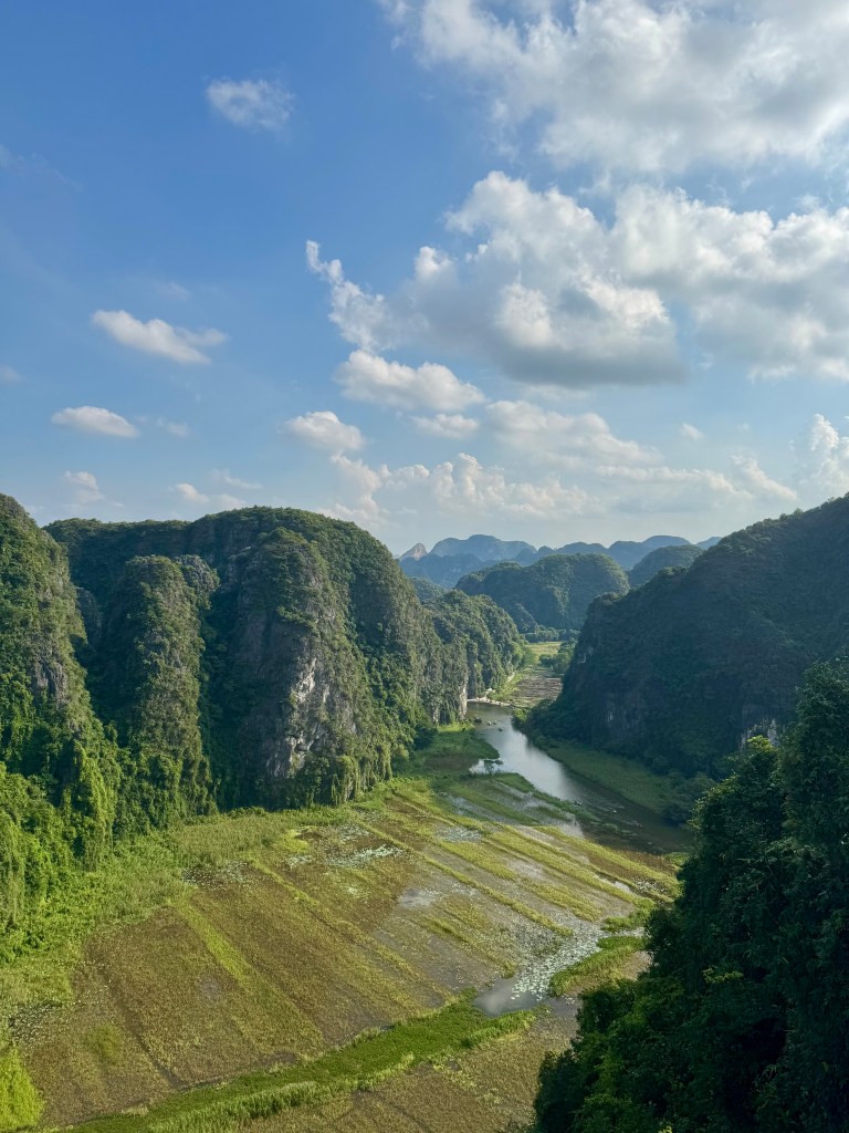 To finish the day, we tackled the hike up to Mua Cave. Calling it “a hike” might be generous—it was more like a stairmaster challenge in extreme heat. But once we reached the top, the view made it all worth it: endless rice fields, winding rivers, and dramatic mountain peaks. I would absolutely recommend this tour. The combination of culture, nature, and a fun guide made it one of our favorite days.